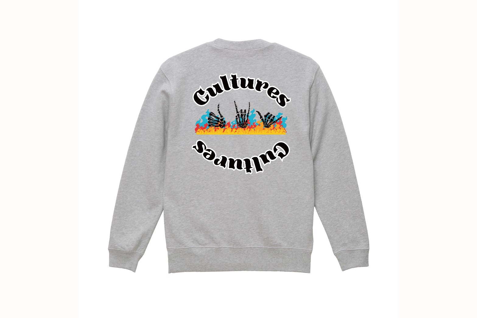 左胸にシンプルなロゴを配置して、バックプリントはCulturesの文字にハンドサインロゴでインパクトのあるデザインになります。