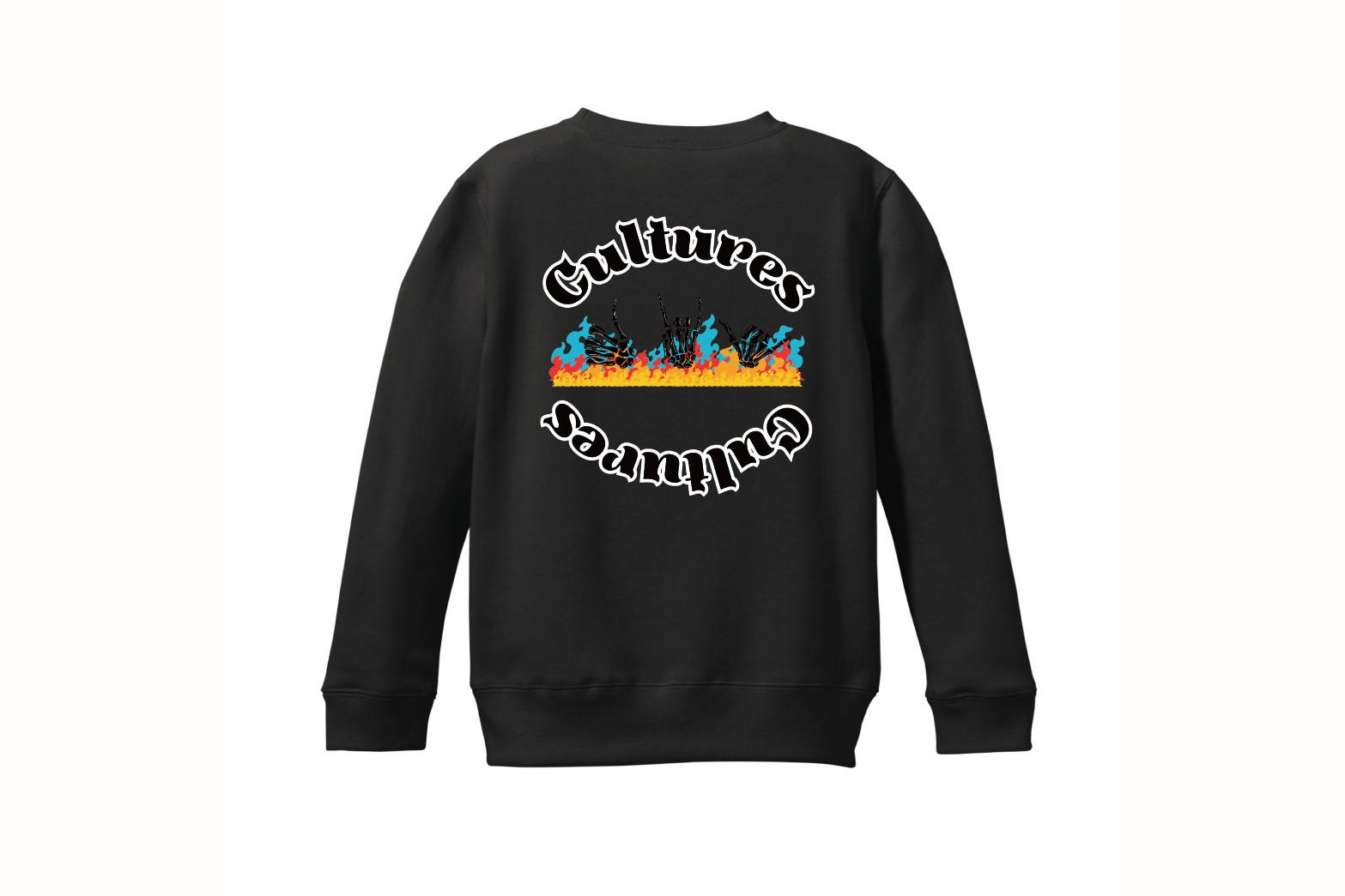 左胸にシンプルなロゴを配置して、バックプリントはCulturesの文字にハンドサインロゴでインパクトのあるデザインになります。