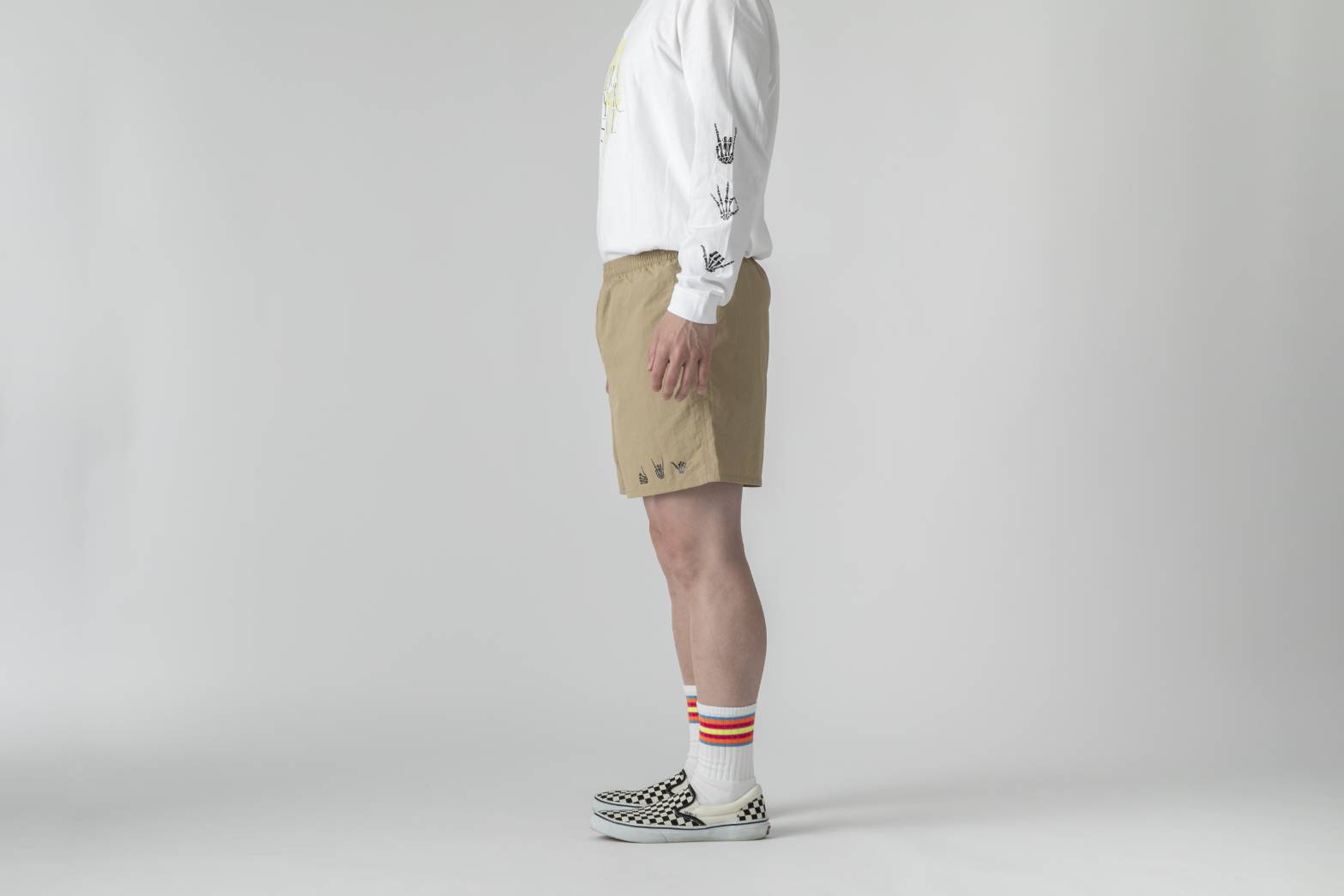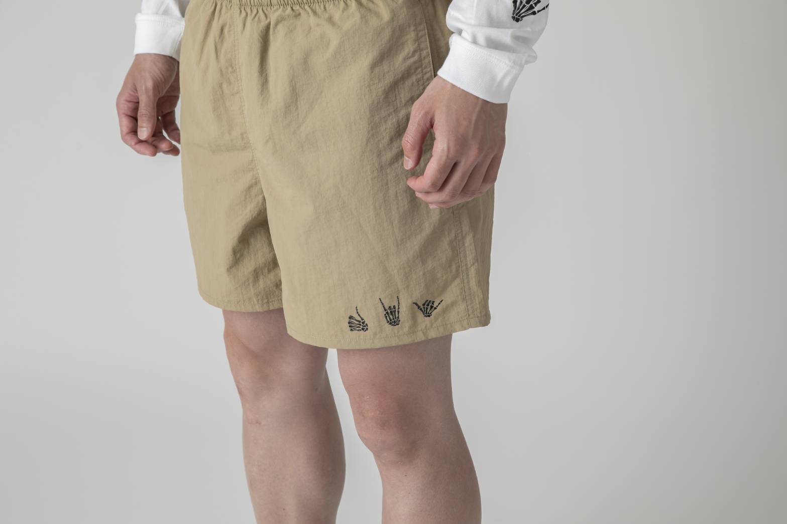 ハンドサインシリーズのTシャツ、ロンTとセットアップ風に着ていただけるバーサタイルショーツになります。